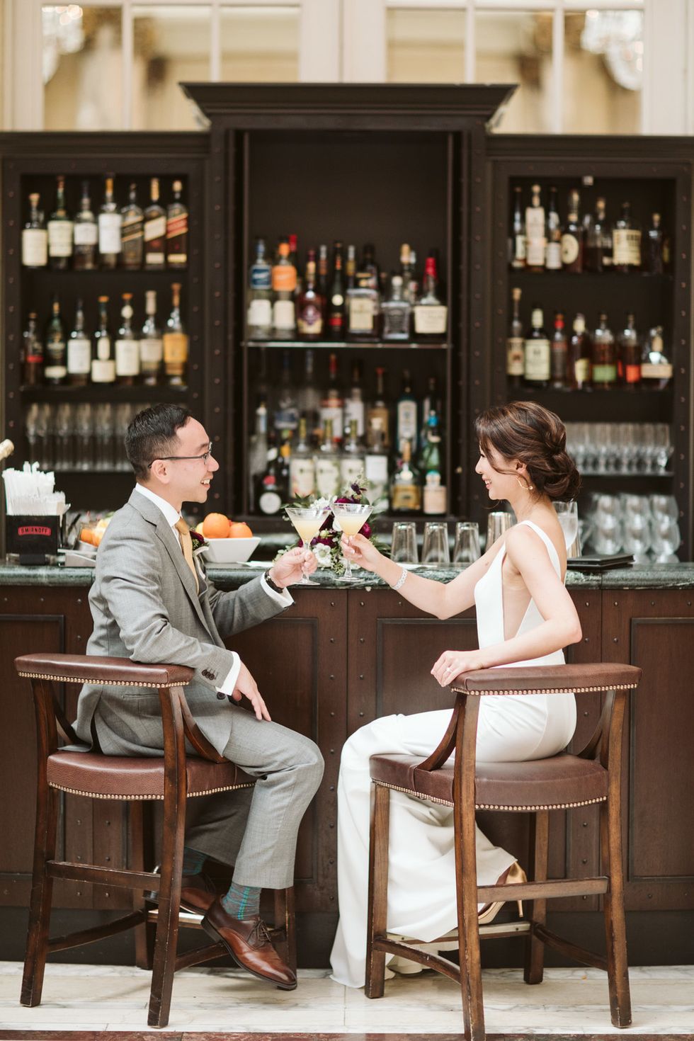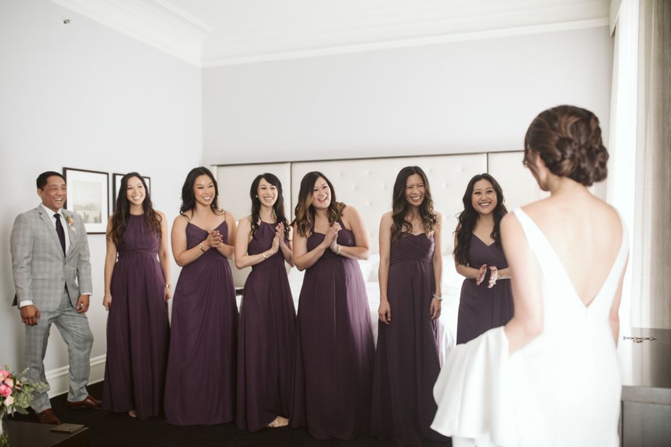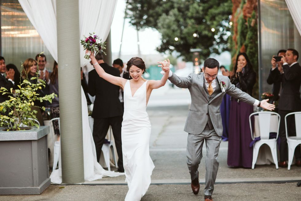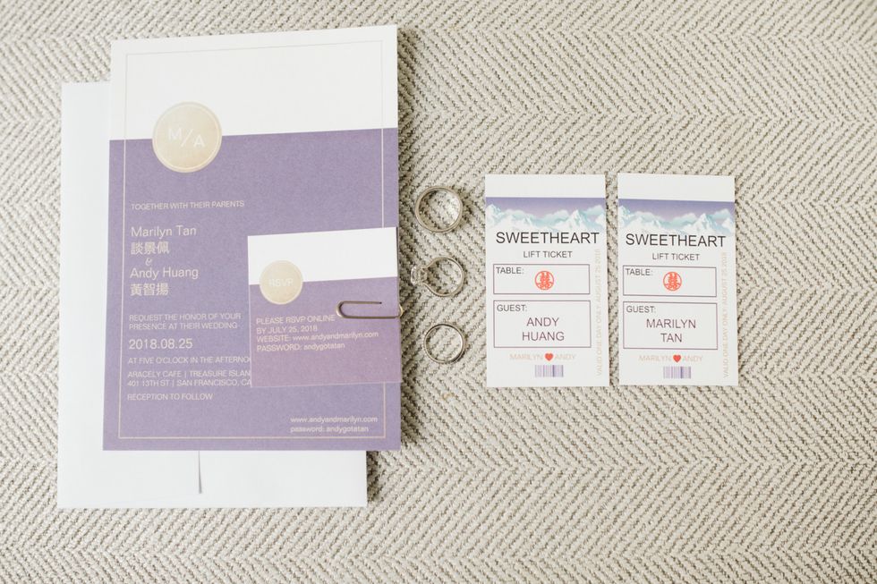 Marilyn Tan and Andy Huang wanted a celebration that would be both classy and also remain true to their roots. And so they planned for plenty urban glamour—the wedding party got ready at San Francisco's crystal-clad Palace Hotel, where the couple also snuck a martini at the bar—before making their way across the Bay Bridge to the ceremony on Treasure Island.