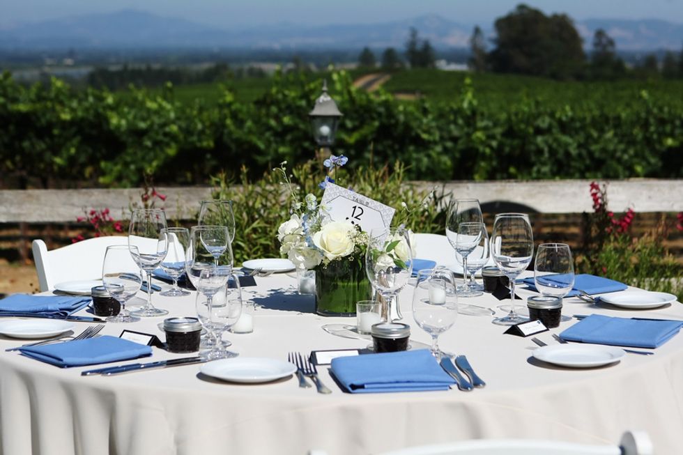While on the hunt for a venue, the couple scoured numerous wineries in Sonoma County; but once they saw the cascading views of vineyards, apple orchards, and distant mountains of Vine Hill House, they knew they had found the spot.