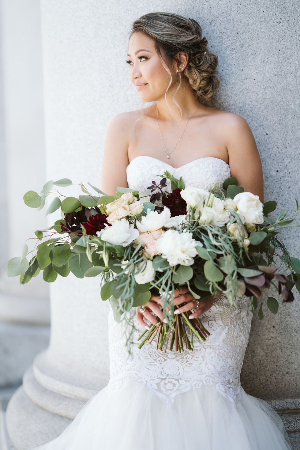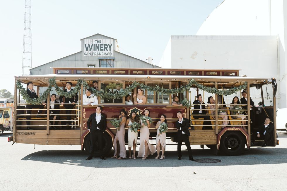 "We had a fluid theme of just highlighting the classy romance of our city, which is why having a cable car onsite was a must for us." One of her favorite memories is riding the cable car up California Street with Bushong while watching the sun set. They wanted to share this quintessential San Francisco experience with their loved ones, so they rented one for the big day. Additionally, Bushong rented a white BMW convertible with red leather interior as a surprise. "I remember wishing I hadn't just gotten my hair done so we could drive with the top down," she says.