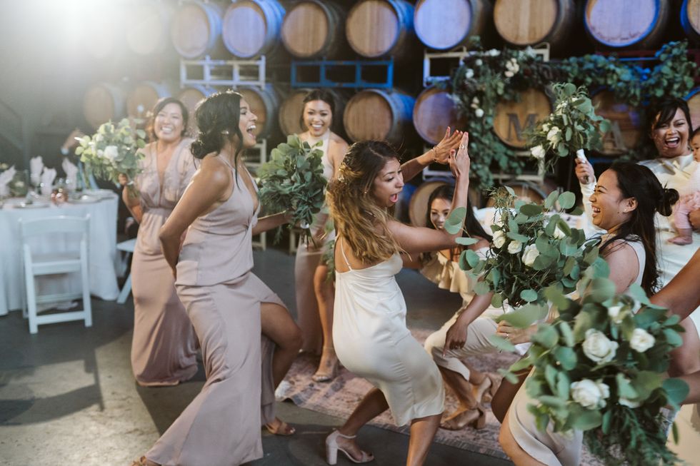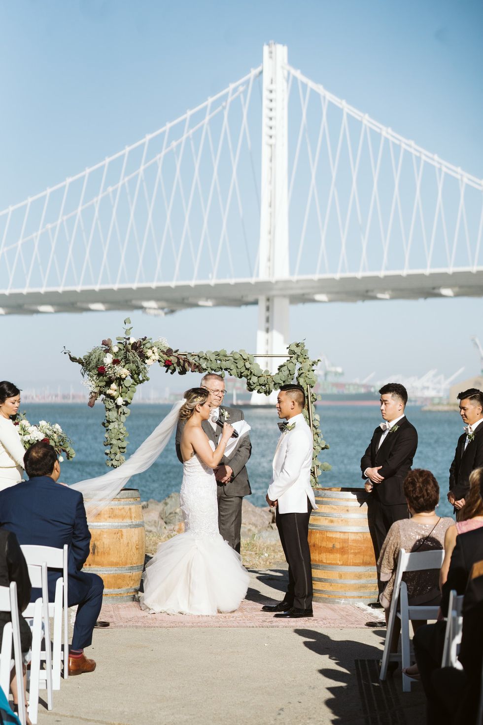 The two both grew up in San Francisco and wanted their wedding day to pay homage to their home, choosing The Winery on Treasure Island as their venue: "We loved it immediately because of its waterfront location, with views of both the Bay Bridge and the San Francisco skyline, and its vintage, laid back atmosphere," explains Joson.