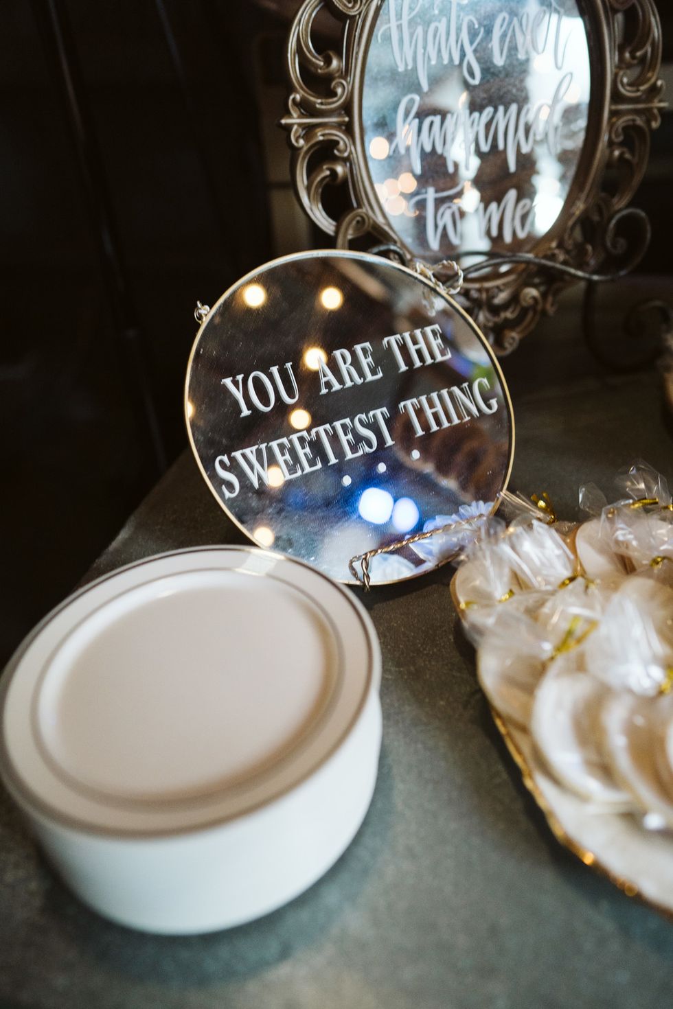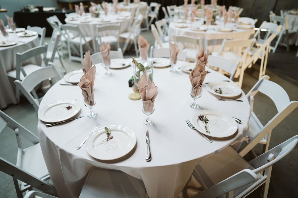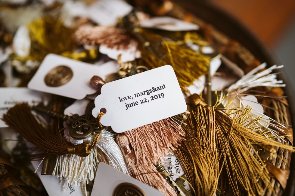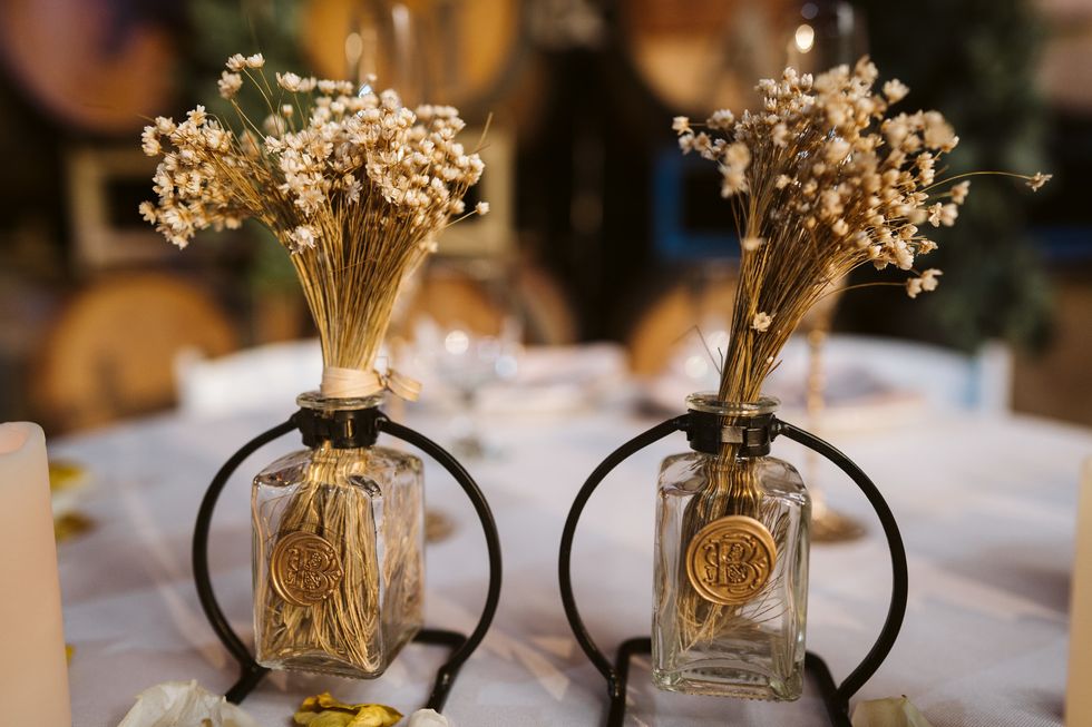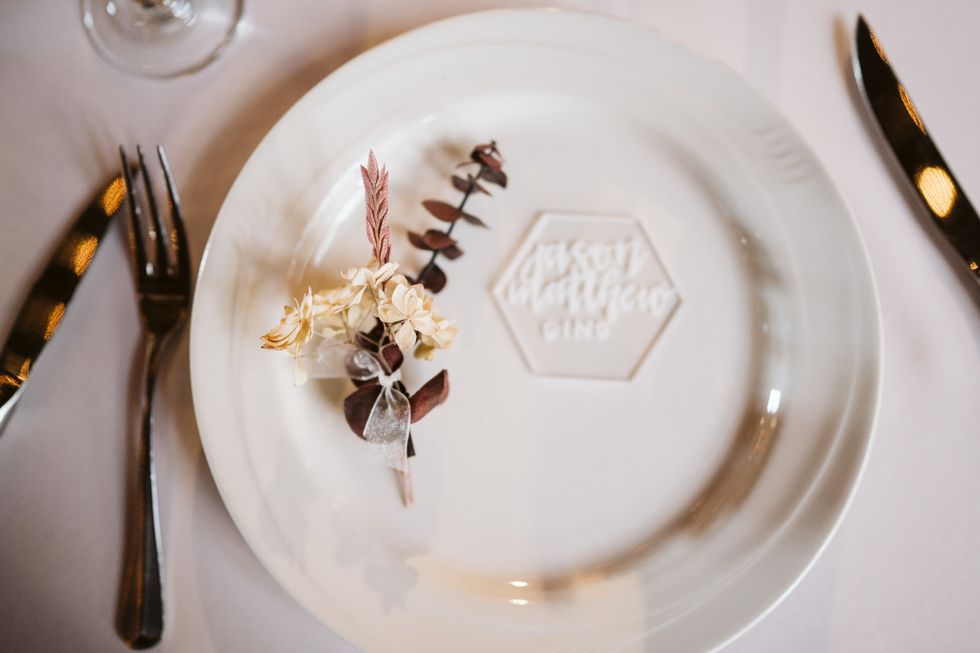 The Winery also included vintage-inspired furniture in their venue package, which informed their decor details. The space was decked out with antique mirrors, tea plates, and eucalyptus. Joson also DIYed a number of elements including the save-the-dates and invitations.