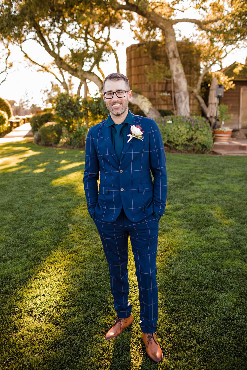 The kept it cool during their pre-wedding hours, each getting a little buzzed with their wedding party. But when it came time to get ready, it was on: She donned a floor-length tulle gown with intricate lace and bead detailing; he sported a natty navy blue windowpane-check suit. The bride wore boots; the groom, dapper oxfords.
