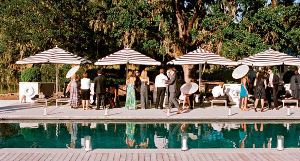 Sorenson channeled the bride’s inner fashionista in a poolside cocktail party that recalled Chanel. The drink of choice was the Shandy, a refreshing British concoction of beer and lemon soda that was a nod to Nick’s English ancestry.