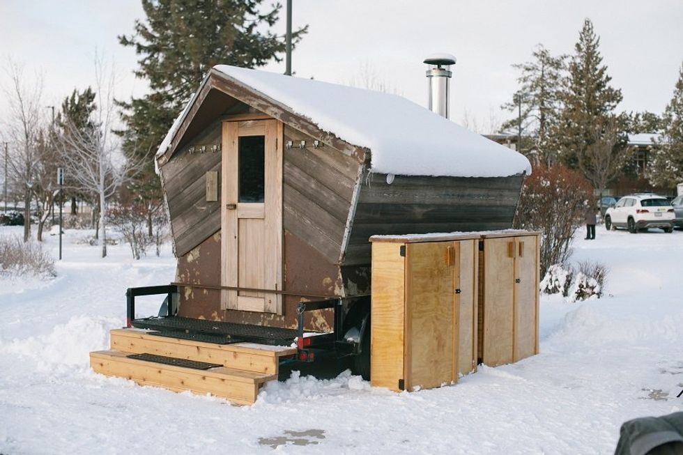 The Baltic-style portable sauna lives in Bend’s Riverbend Park from late September through May, providing private and weekly community thermal contrast therapy sessions. Inside, in front of the wood-fire stove, Kowalski-Thompson uses pine branches like gentle monster hands to restore the heat to our skin and offers us fresh herbs to stimulate our senses of smell, Latvian traditions she learned while studying the art of sauna abroad.