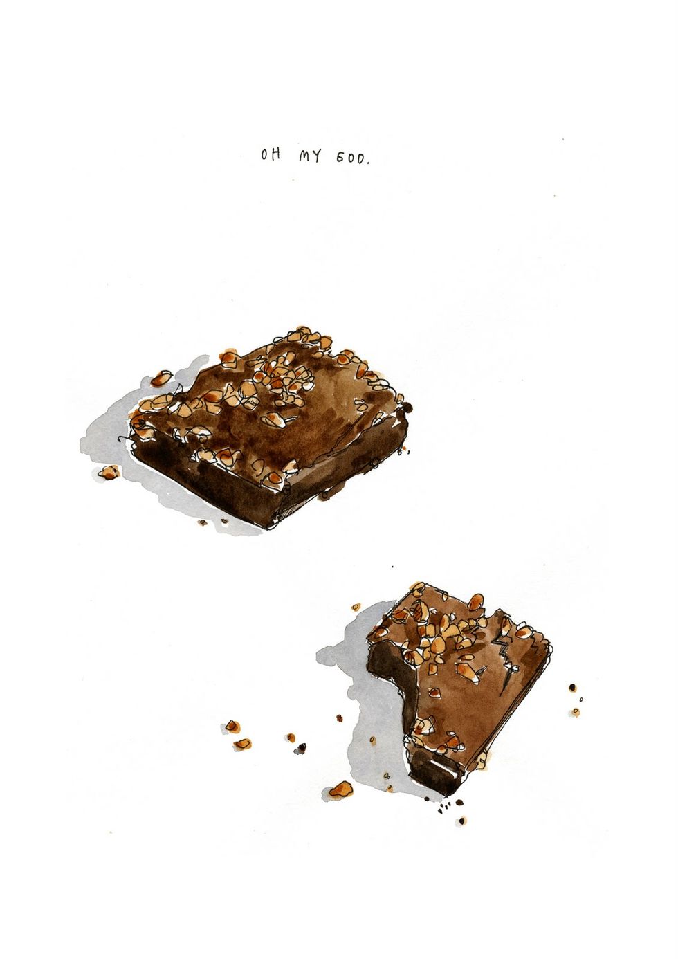 I love the illustration below because you know exactly what she's talking about. In fact, the last thing I snacked on while writing was a Recchiuti Confections malt ball which was indescribably good. Oh-my-god good. I just called to make sure they're still available and apparently there are only ten more boxes left until they sell out. New ones arrive in October. Go buy a box of malt balls now, take a bite of one, and sketch it for posterity's sake.