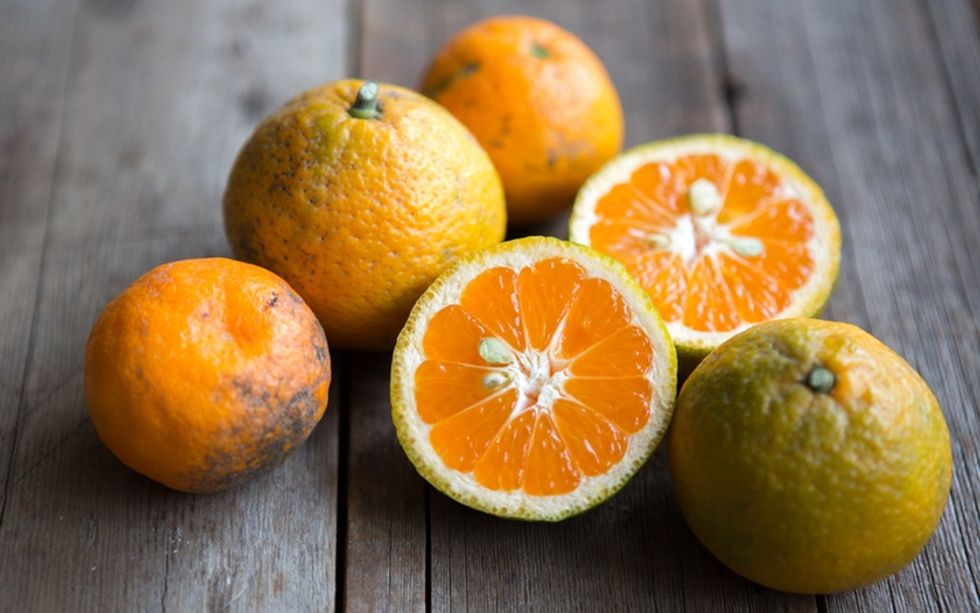 Like tangerines and clementines, Satsumas are part of the mandarin orange family. Satsumas are the sweetest of the bunch and have the most tender texture. The small, seedless citrus has a thick skin that comes off easily, making it the perfect snack to eat by the dozen. Tory Farms has our favorites. // Tory Farms: Thursdays and Saturdays, cuesa.org/tory-farms