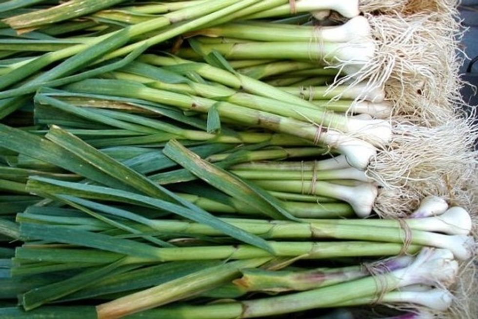 Also referred to as "spring garlic" and "young garlic," green garlic has a much milder taste than the regular garlic bulbs you see year-round at the grocery store (if left to mature, green garlic will eventually turns into those white bulbs we know and love). Use the white and light green parts the same as you would garlic. We especially love them chopped them up, sautéed in a bit of olive oil, then added to an omelet. // Marin Roots Farms: Saturdays, marinrootsfarm.wordpress.com