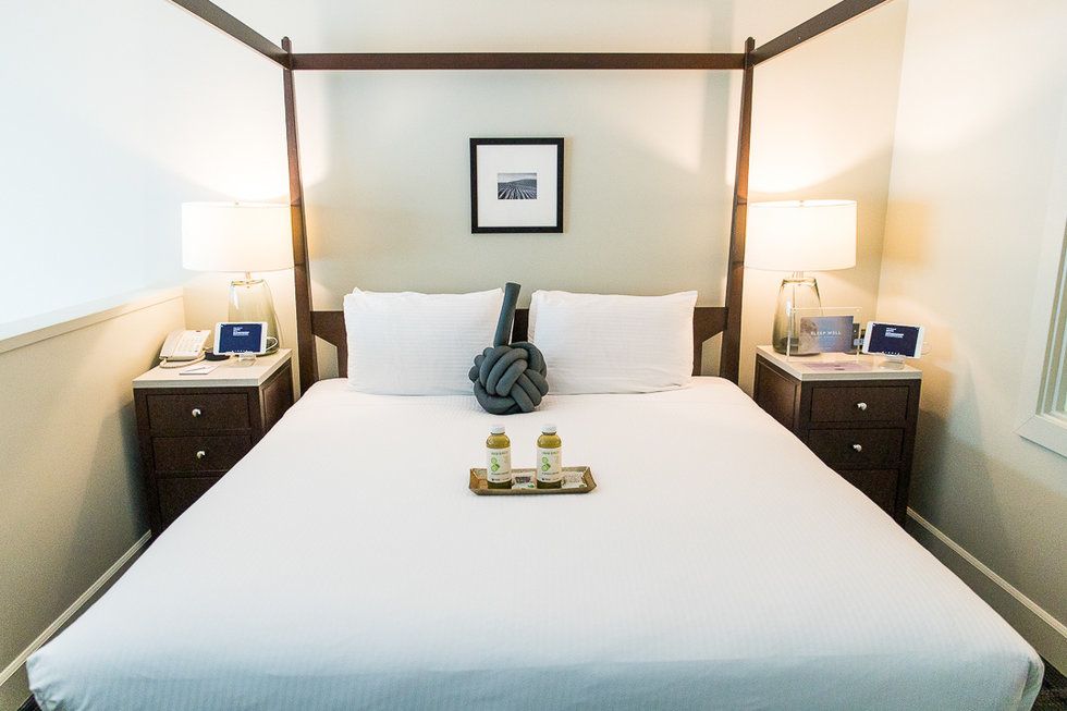 All amenities here are designed with your health in mind: Sleep-tracking smart beds will report the quality of your slumber each morning; meditation headbands will help get you in the right frame of mind; wireless workout headphones with a built-in AI trainer will guide you through your cardio; and snacks from Urban Remedy are around to help you refuel.
