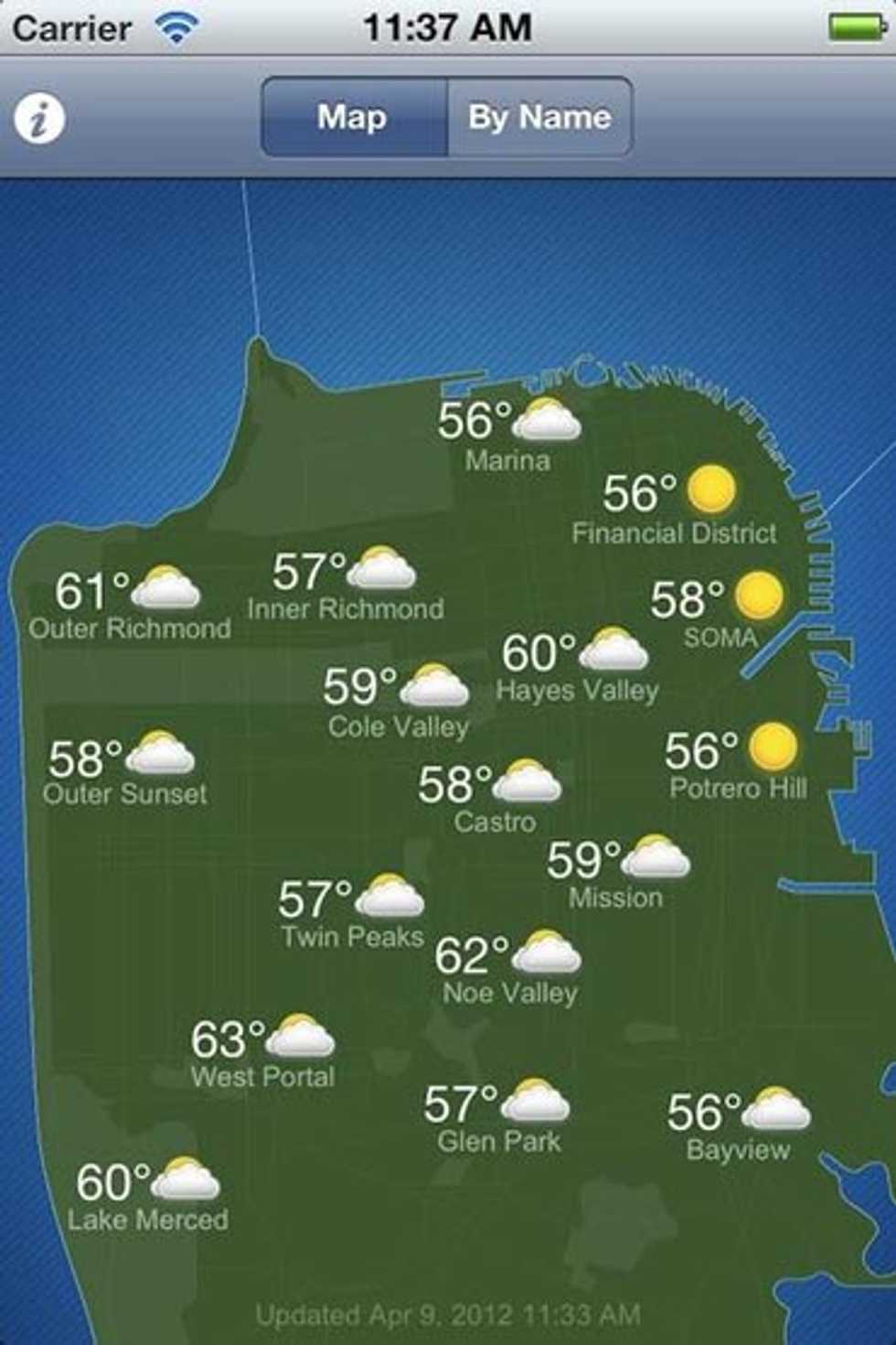 Now there’s an iPhone app that can help you navigate the city’s terrain as well. SF Climates, from Baker Beach Software is the brainchild of Michelle Sintov, who after moving from the sunny Mission District to the foggy Outer Richmond, discovered the need for such a tool first-hand.