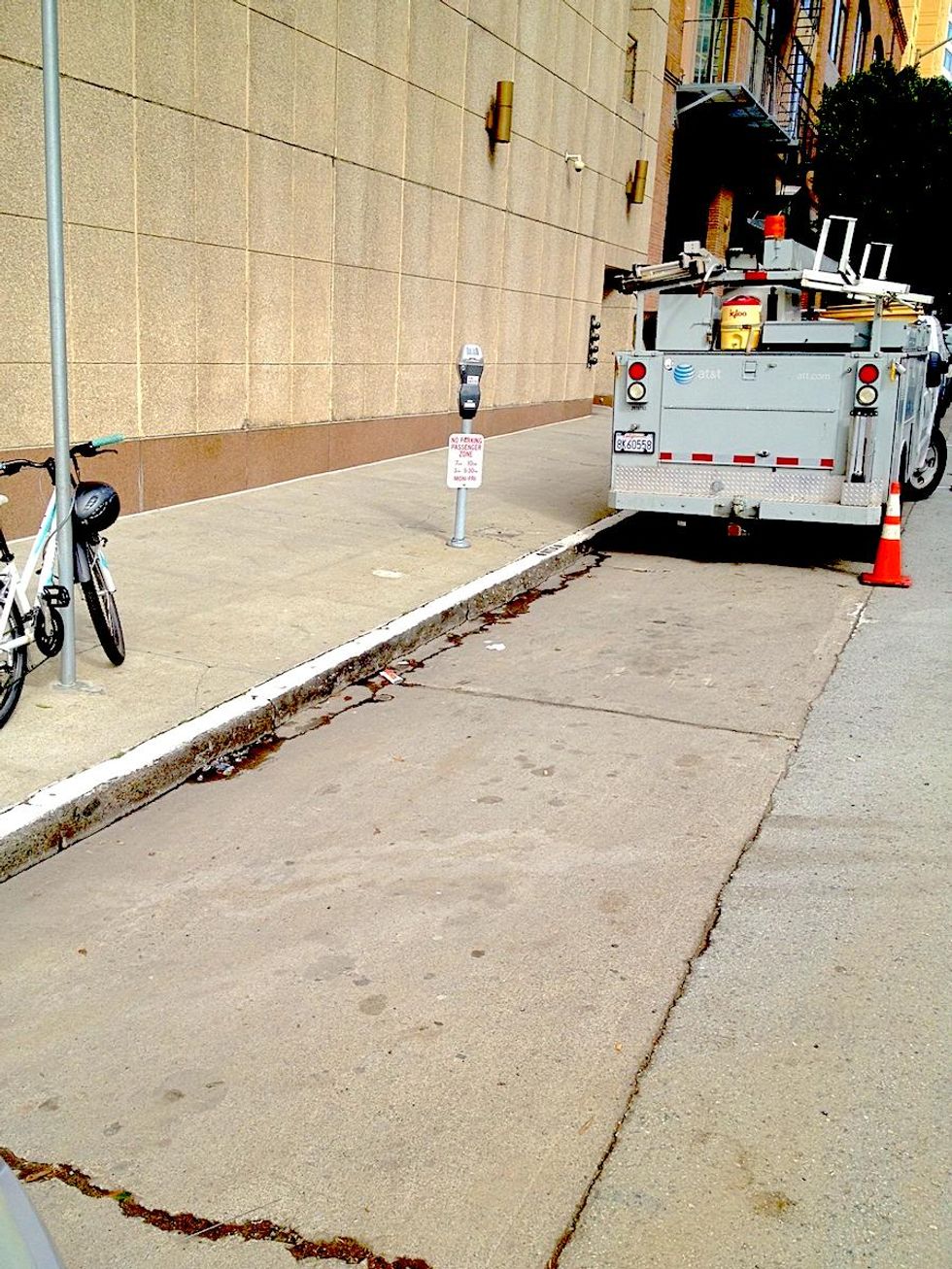 As I sat at the red light a few cars back from the light at Hawthorne and Folsom, I saw it. Around the corner, on Folsom, 10-feet away from the front door of the building, there was a long white zone, and an AT&T truck was leaving one of the spots.