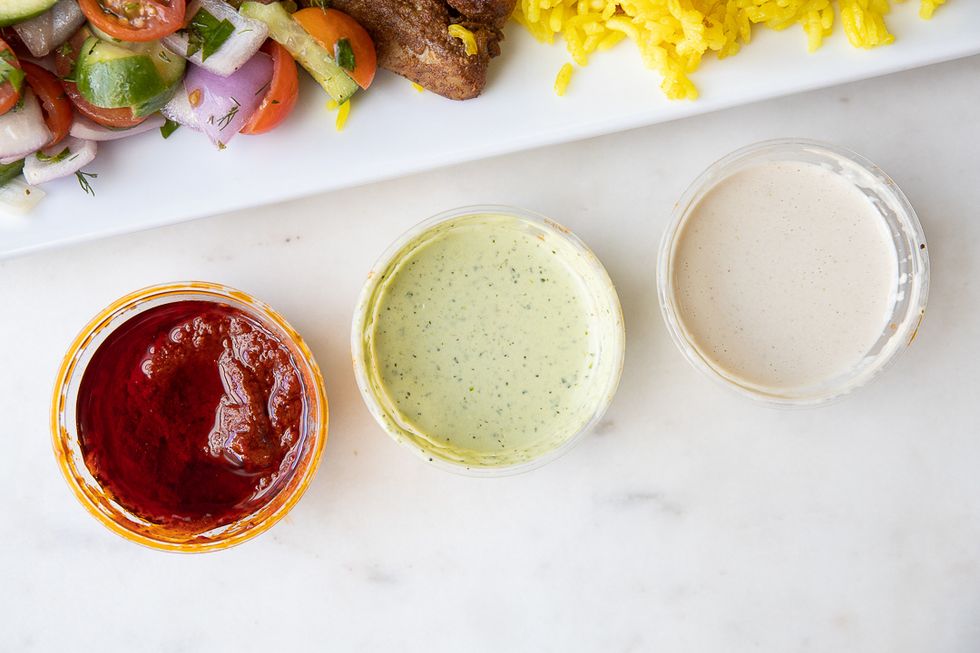 That means a lot of spice, a bit of tang, and vibrant, fresh ingredients. The menu is is categorized into three main options: turmeric rice bowls, za'atar-lemon-dressed salads, and wraps made with wholegrain flatbreads. Each entree comes with a choice of proteins: spiced chicken shawarma or tender Impossible Meat kofta balls. Round out your meal with fries with harissa and herb yogurt, marinated olives with za'atar, and a crisp cucumber and tomato salad.