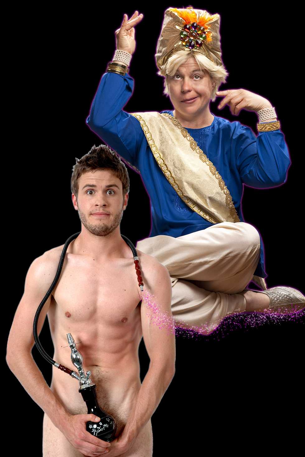 Sara Moore plays the whipcracking genie with her special brand of physical comedy, honed under the big tops of Ringling Brothers and Barnum and Bailey. Don't worry, Moore’s clever, take-no-bullshit bottle goddess kicks Barbara Eden’s flighty ‘60s genie ass.