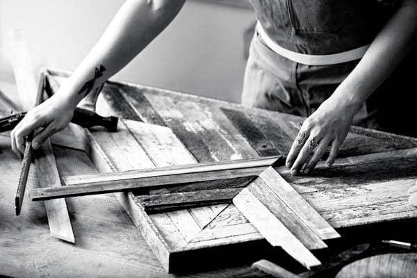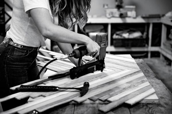 “When I was a teenager, I realized that if I didn’t have a career in art, I was gonna die,” says the Mission resident, who constructs stunning works from new and reclaimed wood, fitting the pieces into ever-changing, Native American–inspired geometric patterns, in her Mid-Market basement workshop. Zee’s former day job as a visual artist for Anthropologie, where she designed and built window displays, was her entrée into the world of woodworking. (While at Anthro, Zee met her studiomate Katie Gong, whom she credits with teaching her the basics—from A to Zee, so to speak—about woodcraft.) “I like the idea of creating something temporary,” she says. “It’s there and then suddenly it isn’t. Fleeting beauty contains a moment of history.”