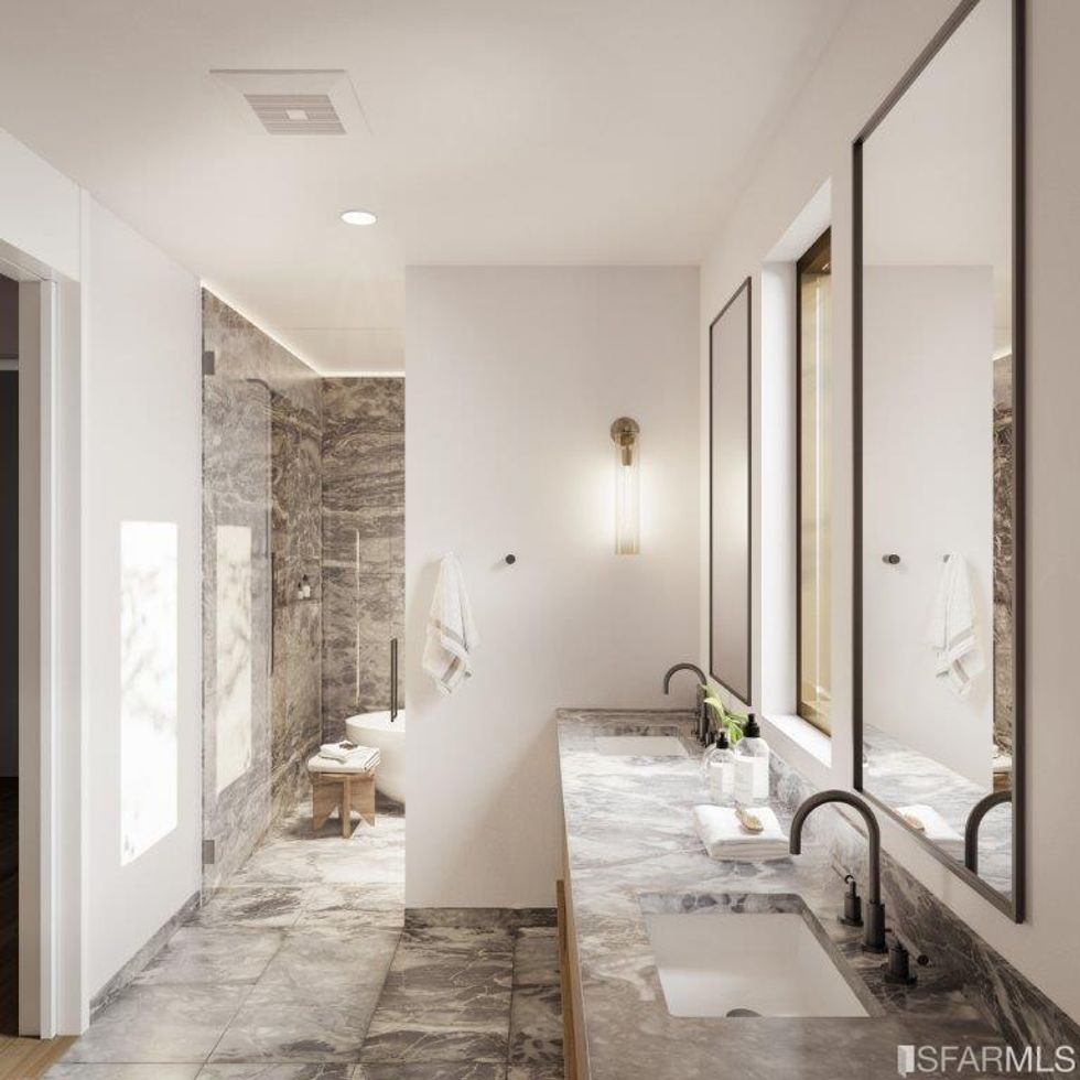 Owning a townhome on Yerba Buena Island comes with the perks of community living—there's also a modern terrace with an outdoor fireplace, massage room, and dog park—but a premium is also placed on privacy. Each home has its own private entrance and attached garage. This three-bedroom unit is three levels with a roof deck and maintains the air of a single family home.