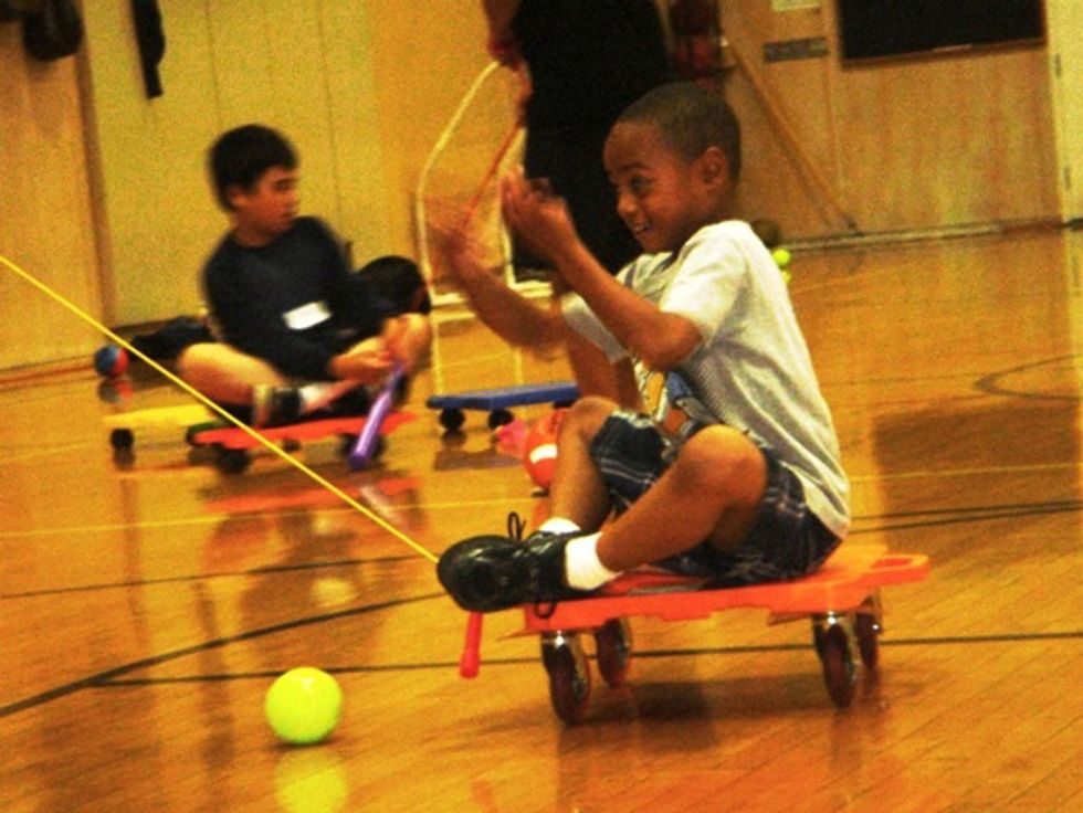 There was a boy named Brian. He was always standing at the door watching everyone and looking confused. He had trouble connecting with the other kids and coaches. All of a sudden, a coach came in, who happened to be the president of our board, Scott Wiley, and I don’t know what it was. That day, he reached Brian, and Brian got on a scooter with jump ropes attached to it, and Scott was pulling him around the gym and he had this smile on his face! We had never seen him smile before that. It was such a huge breakthrough.