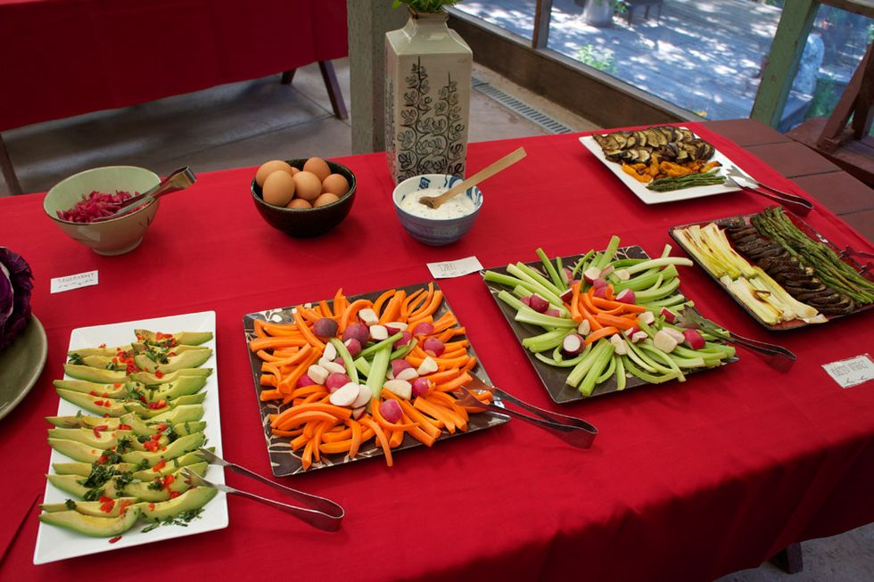 The day's meals — from their famous bread (see the well regarded Tassajara Bread Book if you aren't familiar, penned by former Tassajara cook and Zen monk Ed Brown) to lavish lunch spreads to pizza dinners — are an integral part of the experience, with the breakfast, lunch, and dinner bells part of the audio clock of each day. A schoolbell rung by a student near dawn, at 5:20 am, signals the community to rise (if they wish) for morning zazen (seated meditation). Wooden blocks at the complex's zendo and other locations create another set of signals for students, and bells at the dining hall give alerts at mealtimes at 9 am, 1 pm, and 7 pm. These sounds, like those one might year at a Zen monastery centuries ago, create the rhythm for each day without watches or cell phones. And though no alcohol or meat is served, guests are welcome to bring their own wine and snacks, which can be stored in a single guest refrigerator next to the dining hall. We also highly recommend the bag lunch option, offered every morning for those who might not want to make it back in time for seated lunch, with its generous array of cheeses, homemade spreads, vegetables, pickles, bread, and cookies to take away and eat when you wish.